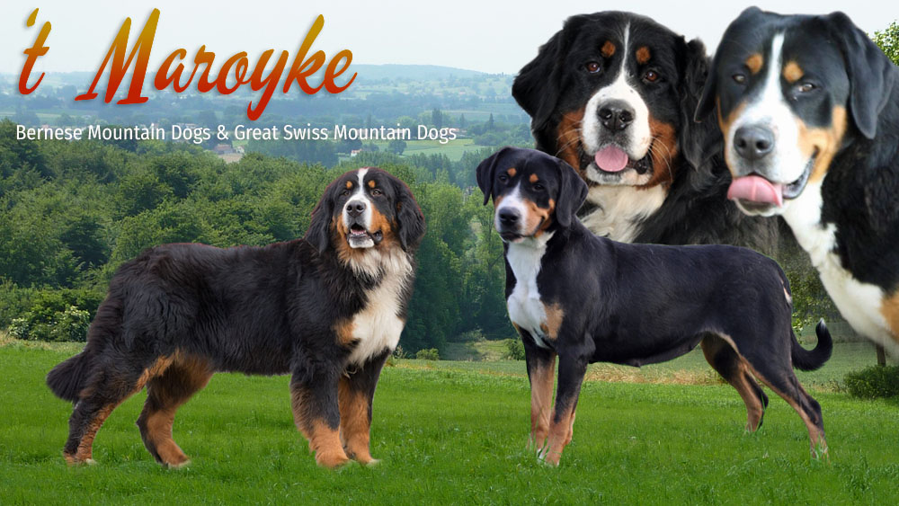 ![]() Welkom op de website van 't Maroyke, Berner Sennenhonden & Grote Zwitserse Sennenhonden Bienvenue sur le site de 't Maroyke, élevage des Bouviers Bernois & des Bouviers Grands Suisse Welcome to the website of 't Maroyke, breeder of Bernese Mountain Dogs & Great Swiss Mountain Dogs Na een onprettige ervaring met een hond van onbekende afstamming zijn we op zoek gegaan naar een kindvriendelijke, betrouwbare en vooral zachtaardige gezinshond. Het resultaat was de Berner Sennenhond. Dit beviel ons zo goed dat er al snel van eentje, twee kwamen, nog later drie, vier, enz. tot het uitgegroeid is tot onze Berner Sennenkennel. De Grote Zwitserse Sennenhond beviel ons eveneens en ook dit ras maakt sinds enkele jaren deel uit van onze kennel. Alvast veel kijkplezier tijdens uw bezoek aan onze website. Aarzel niet ons te contacteren voor meer informatie.